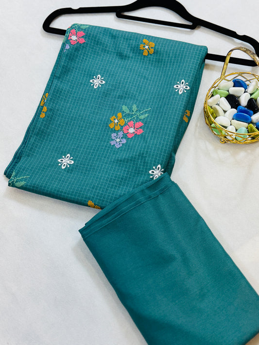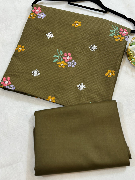 Embroidered full jall shawl and plain suit