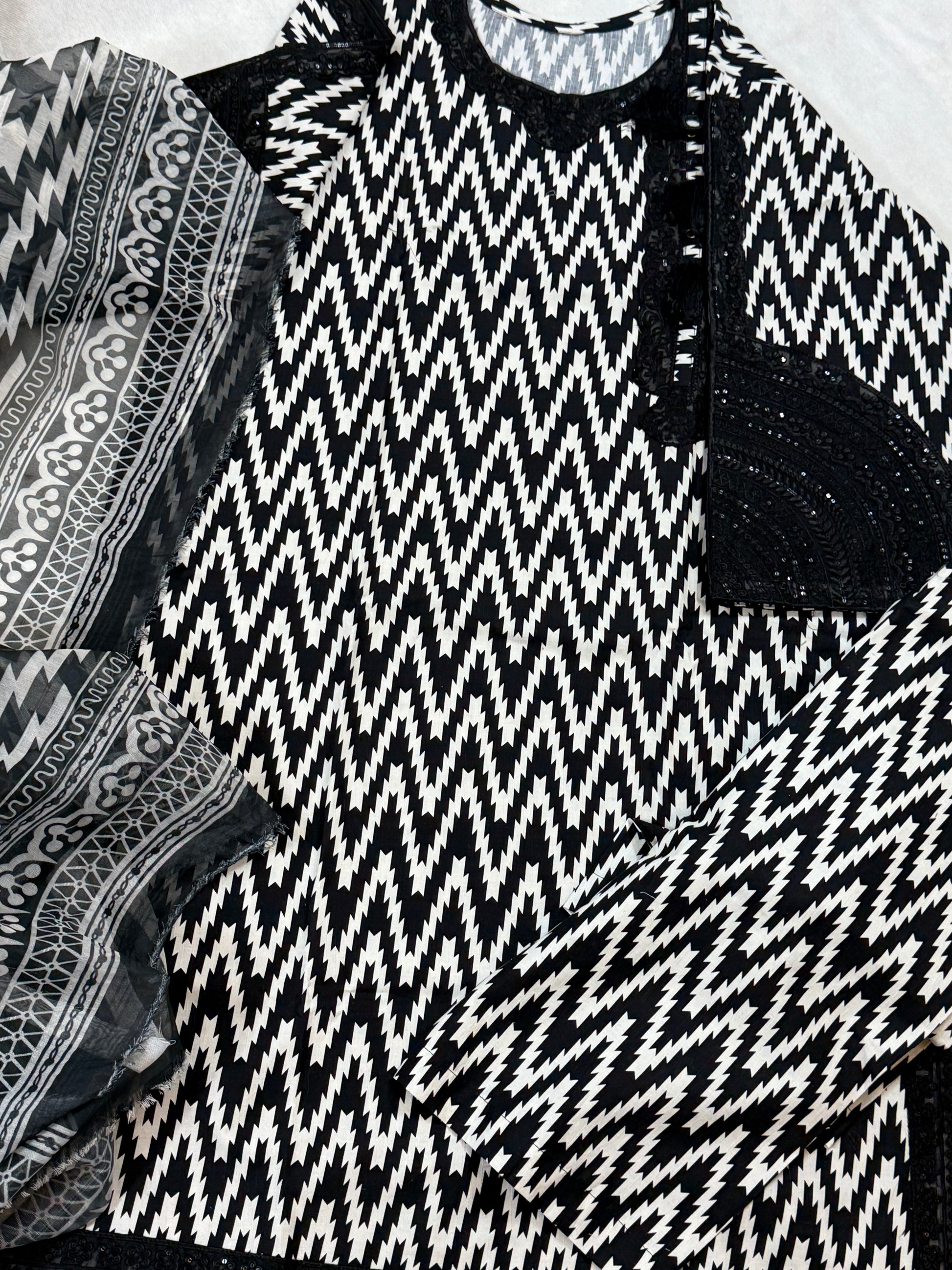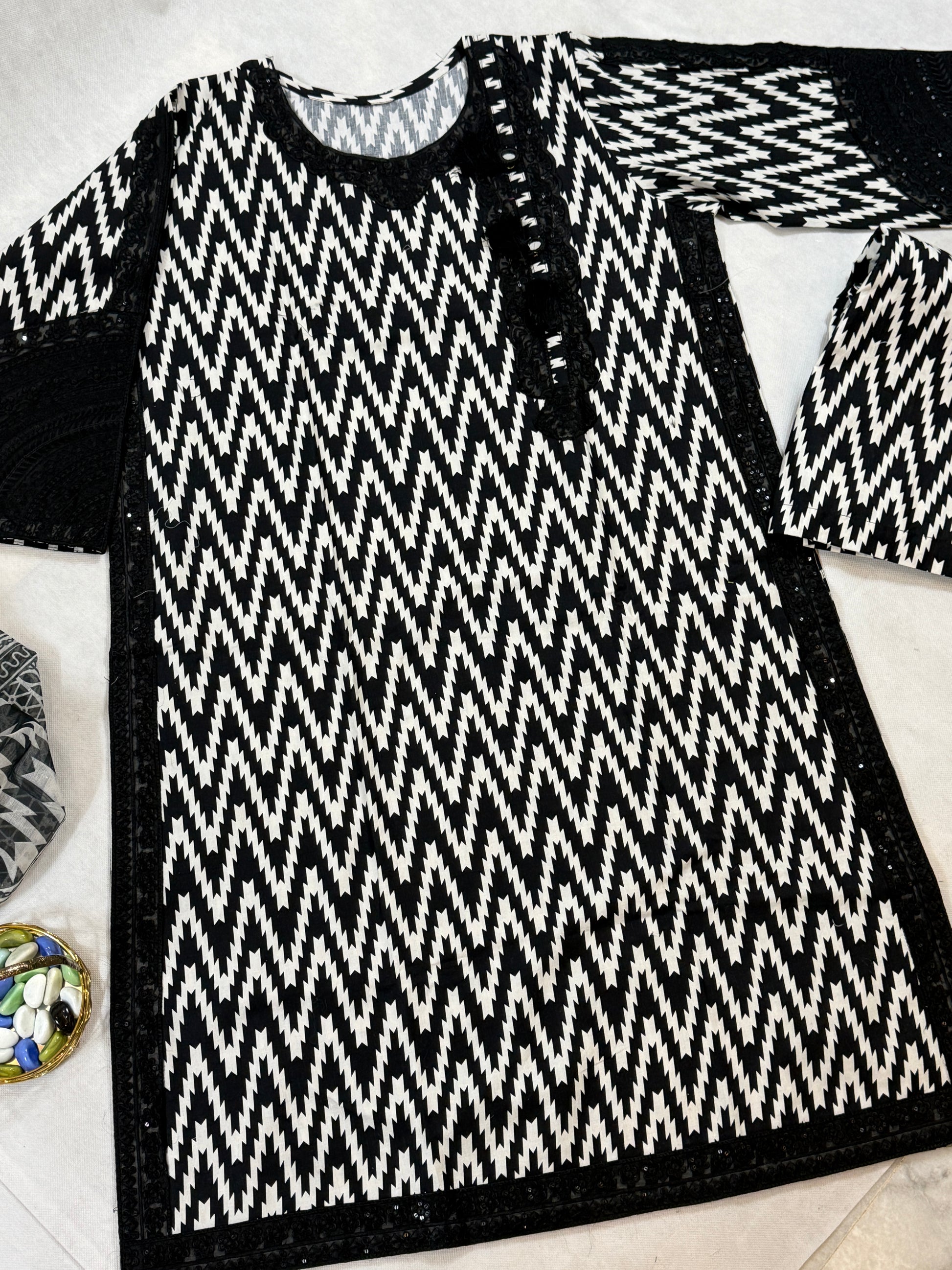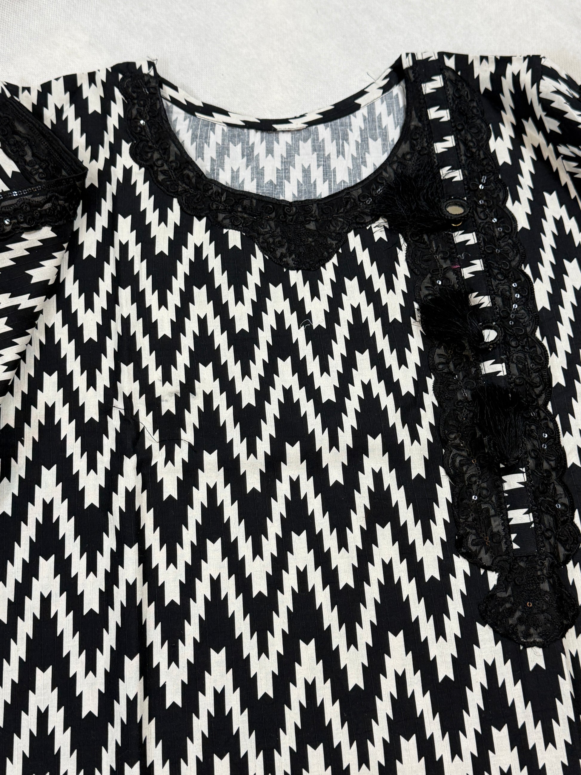 Black and white stitched